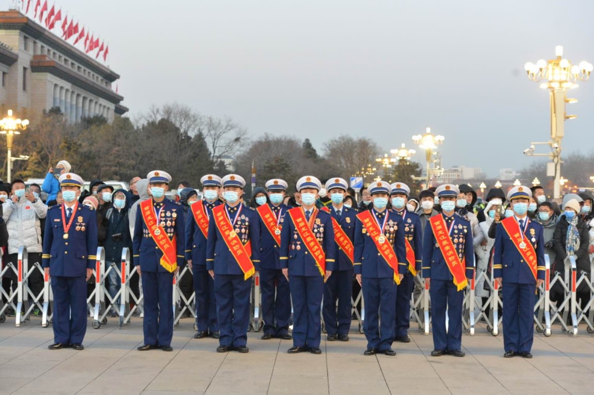 人群里有10位穿着“火焰蓝”制服的消防员。李函默和其他9位队友来自黑龙江,也是首届“龙江最美消防员”的获得者,此次特别受邀来观旗。“半个月前我亲手从天安门管委这里接过一面2020年10月9日升起的国旗,那一刻我深刻感受到投身消防、扎根边疆的意义。”李函默告诉记者,他从小在北京周边长大,每年都有参加升旗仪式,但这次作为“龙江最美消防员”受邀来参加却意义非凡。