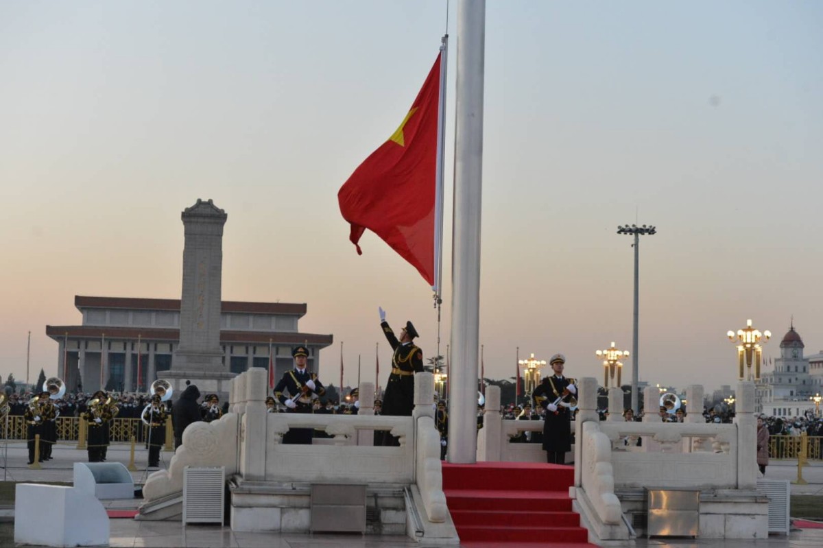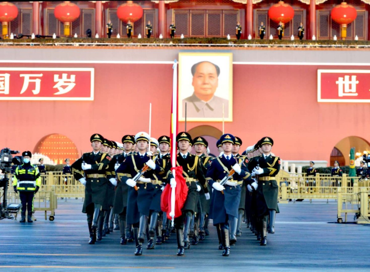 今天清晨,1.5万名市民和游客齐聚天安门广场,共同见证五星红旗冉冉升起的庄严时刻,迎接2021年的第一缕阳光。