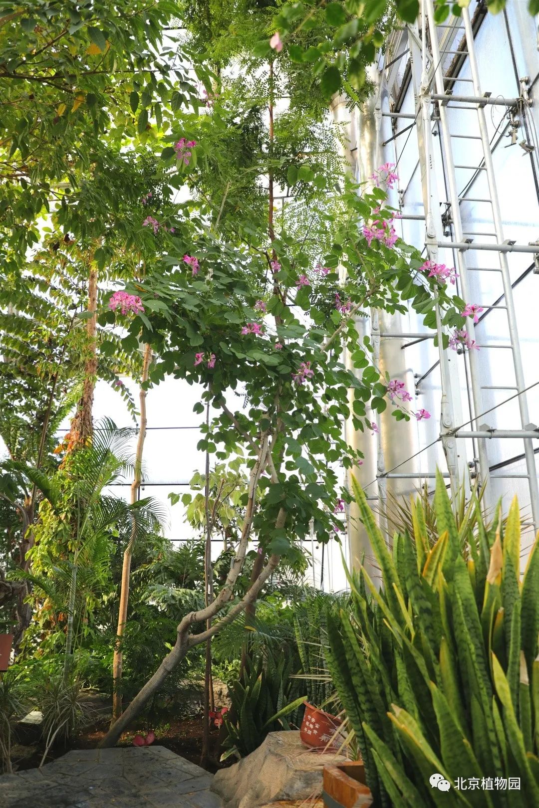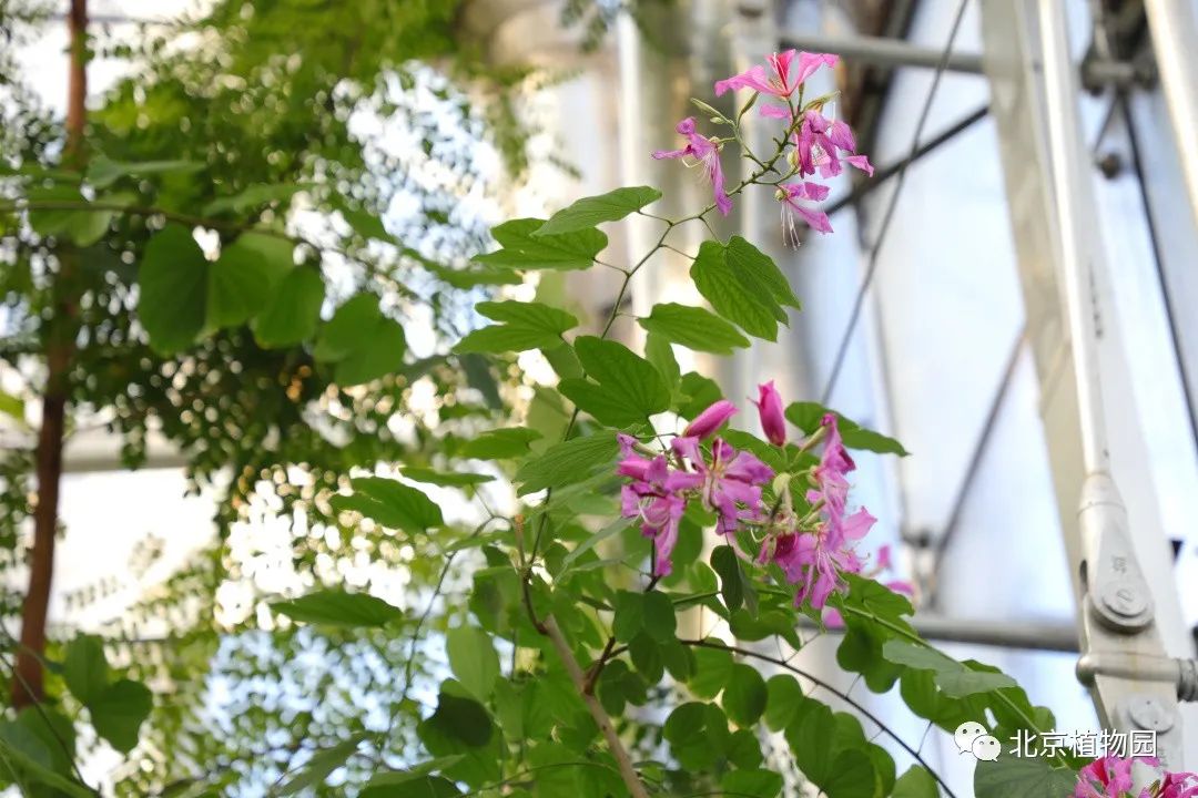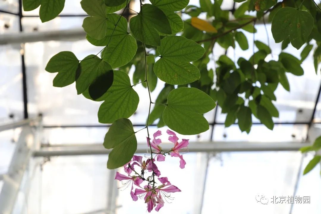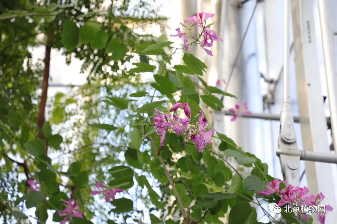洋紫荆,豆科羊蹄甲属,别名宮粉羊蹄甲、羊蹄甲、红紫荆、红花紫荆、弯叶树。之所以叫羊蹄甲是因为它的叶片上有一个小缺口,像羊蹄的形状一样。洋紫荆位于展览温室热带雨林展厅,目前正值花期。