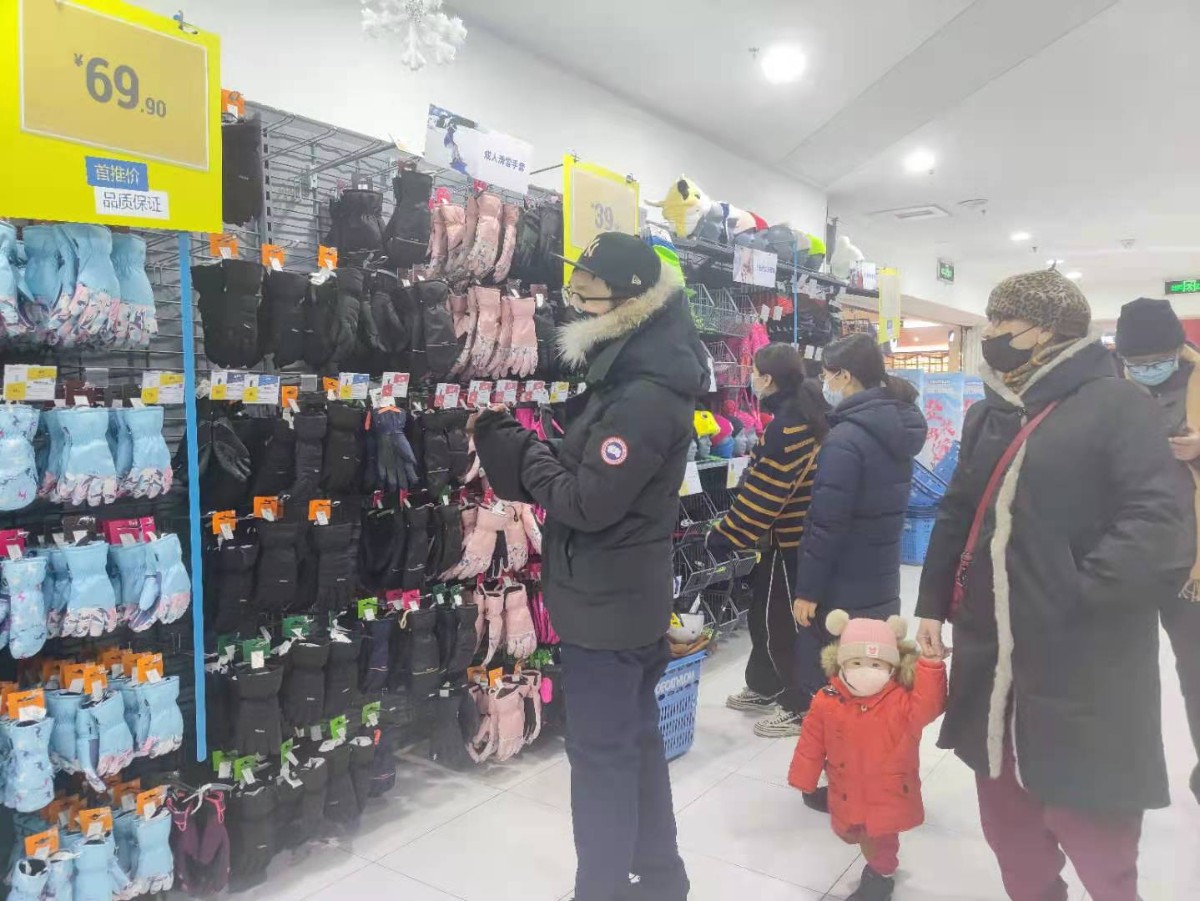 昨天上午10时,走进枫蓝国际购物中心的迪卡侬店,在入口通道旁的显眼位置,数十种手套、帽子、暖宝宝等产品挂满了一整面墙。虽然是工作日,前来选购御寒物品的顾客仍然络绎不绝。“这几天被北京嗷嗷的大风吹得‘晕头转向’,赶紧带孩子来多买几件御寒装备应急。”正在给儿子选购商品的钱女士说。