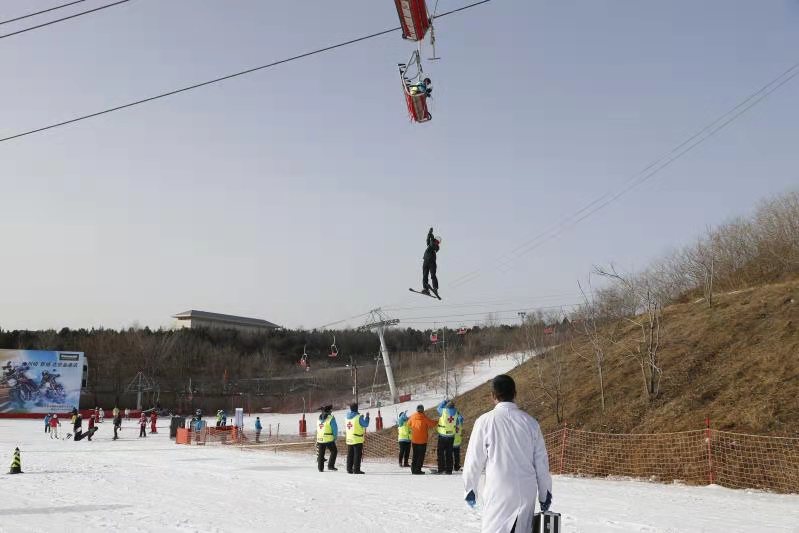 进入滑雪场旺季,今天上午,一场索道困人救援应急演练在滑雪场上演。丰台区市场监管局执法人员现场对万龙八易滑雪场的特种设备运行安全、疫情防控、食品安全、产品质量等情况进行检查,并查看了应急演练。