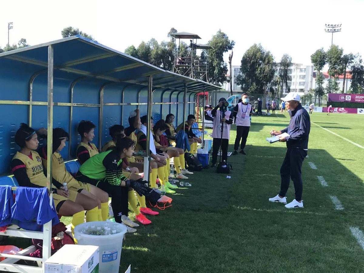 2020赛季女超联赛,于允在中超休息时给队员们布置战术。