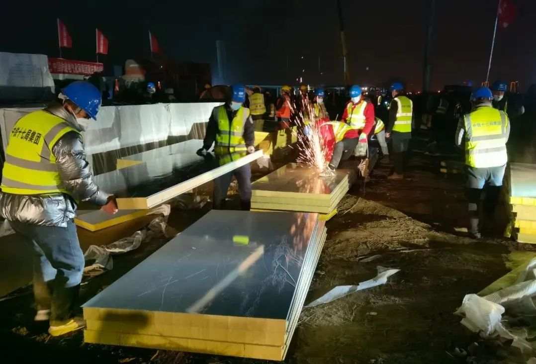 作为主要承建单位,中铁十四局集团、中铁十二局集团的“支援部队”仍在源源不断涌上前线,与前期队伍实现接力换手、交棒继续,始终保持最佳状态、最强战力、最快速度。16日20时许,中铁十四局集团石家庄产业园42名员工投入门窗安装战斗中;22时许,位于沧州的石港项目部组织近60人增援队伍整装出发,并于当天到位上岗。中铁十二局集团从山西原平,星夜增派近100名赶赴现场。多批增援队伍的到来,有效缓解了当前人员长时间高强度作战带来的精神紧张、身体疲惫等问题。
