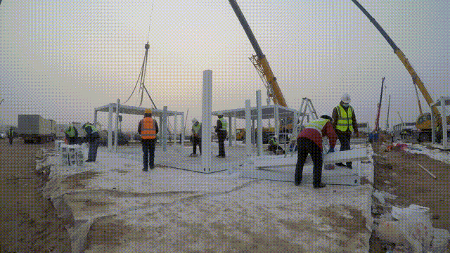 中国建筑工作人员搭建集中隔离点隔离集成房