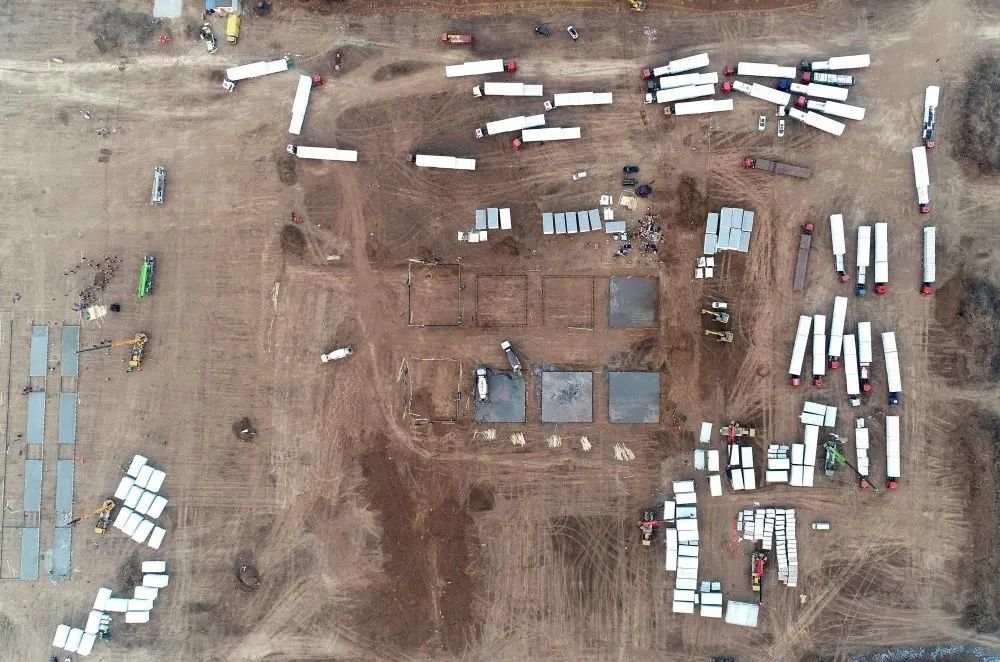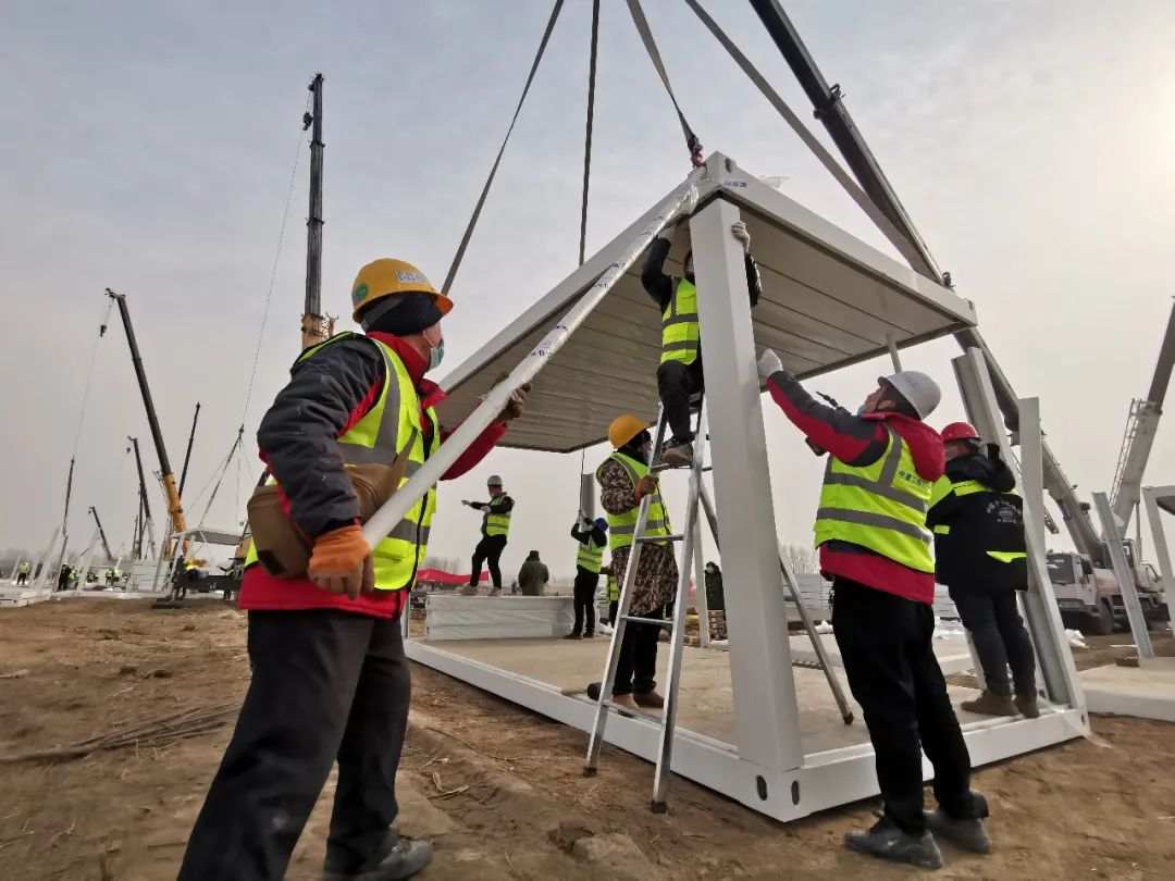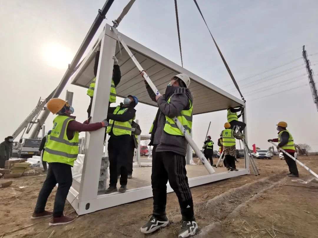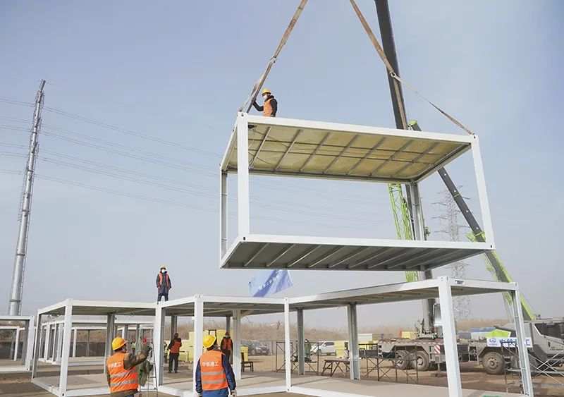 中国铁建承建石家庄隔离点第5-8隔离分区及其配套的工作营、物资营的房屋基础建设、隔离房拼装、场区道路及围栏施工、给排水施工及电气通信施工等工程,进场后又增加了隔板切割,门窗及窗帘安装等施工内容。