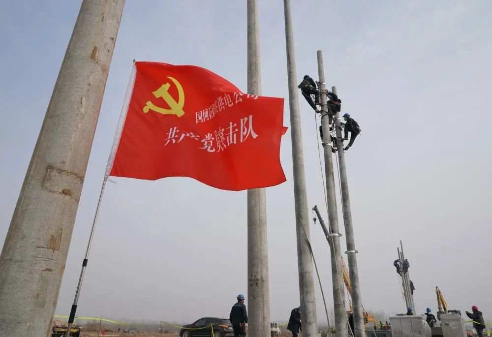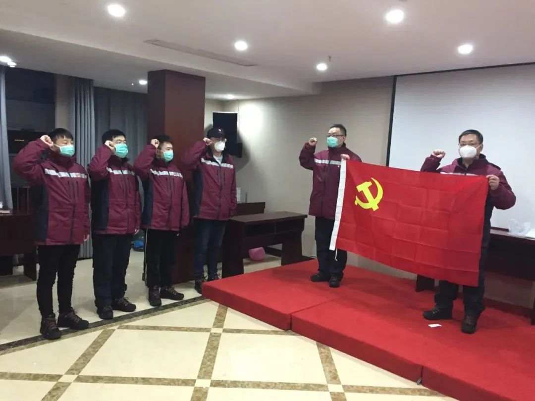 1月13日石家庄市集中隔离点,党旗在一线建设工地高高飘扬。