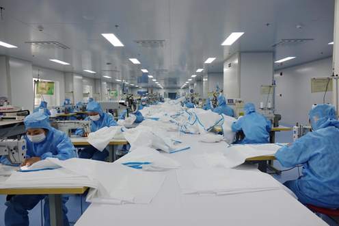 2020年2月,新兴际华集团所属军队服装生产企业紧急转产医用防护服。2月5日产量7850套,9天内快速提升至4.4万多套,圆满完成国务院“2月14日形成防护服4万套天供应能力”的指令性任务。