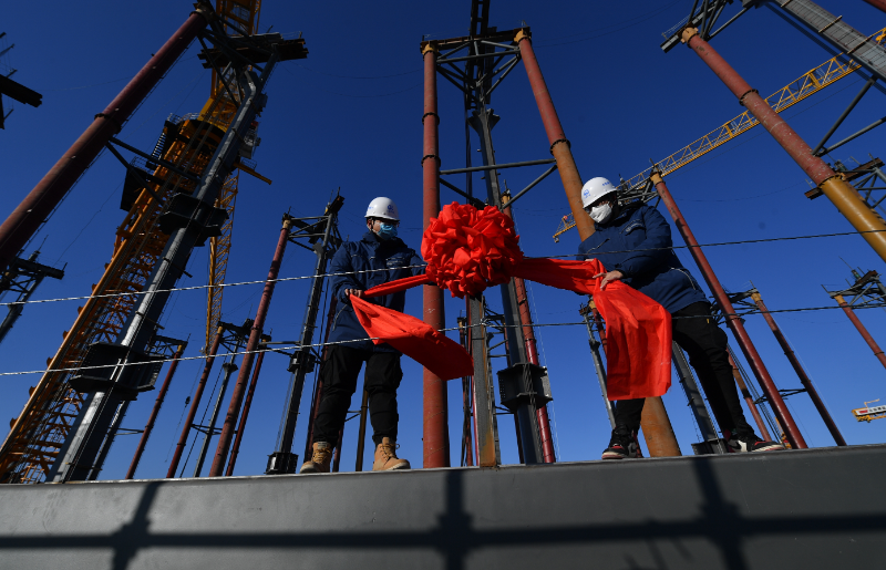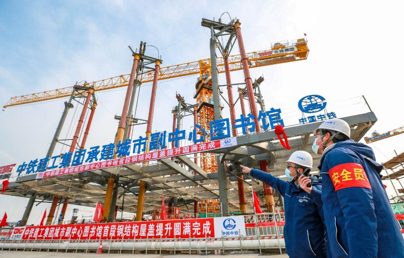 据施工方中国中铁建工集团有限公司生产经理张立华介绍,首段屋盖面积5100平方米重达1000吨整体提升21米,通过27个提升点同步提升,并且利用40个测量控制点进行全方位全过程监测,保证屋盖结构顺利提升。该项工程完成后,标志着由中铁建工承建的城市副中心图书馆第一施工区顺利封顶。