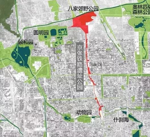 京张铁路遗址公园是在京张高铁入地段利用废弃的铁路遗址进行建设,南起西直门,北至北五环,纵贯海淀南北,全长约9公里,建成后将服务沿线9个街镇,惠及超过20所高等院校和科研院所、近70个社区。