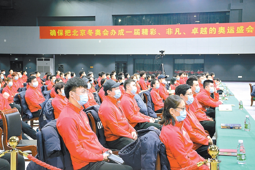 图为冰雪项目国家队组织学习习近平总书记重要讲话。实习记者 邓方佳摄