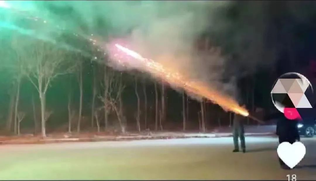 注释:“加特林烟花”,名字由加特林机枪而来,因射速快、火力猛而得名。"钢丝棉",材质是一种比较细的低碳钢,它的燃烧属于物理燃烧,由于燃点比较低,在遇到高温的情况下会形成液态,所以在使用的时候,很容易灼伤使用人的皮肤,或者引燃周边的可燃物。尤其在现在干燥大风的天气下燃放,非常危险。