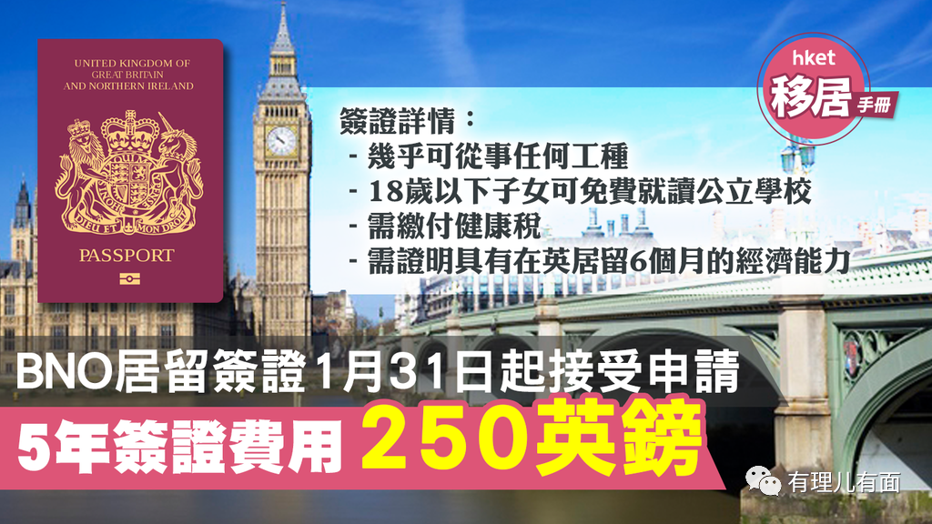 为对抗《香港国安法》的实施,英国当局宣布1月31日起,持有BNO(英国海外国民护照)的港人及其家庭受养人,可申请BNO居留签证,在英国工作及读书。在英国居留满5年后即可申请定居,再居住12个月后申请入籍,也就是香港社会说的“5+1”入籍英国。