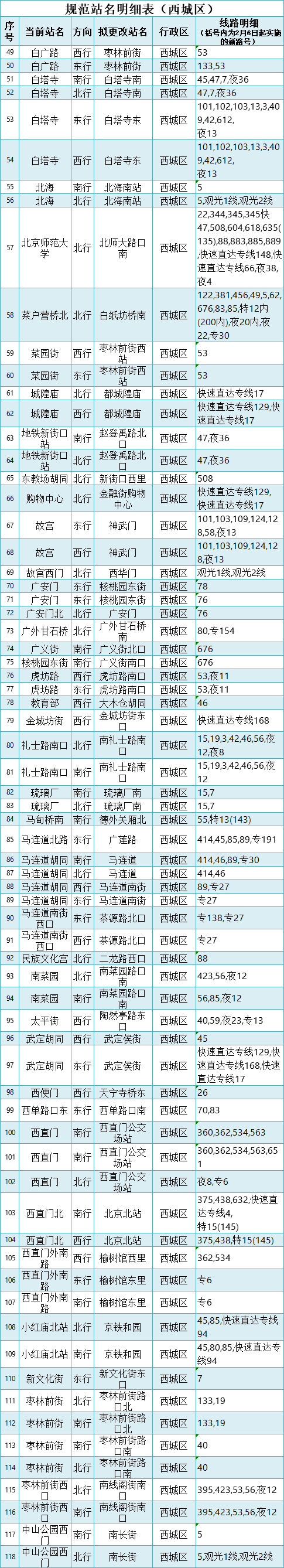 公交集团相关负责人介绍,近年来,由于外部实体变化、站位挪移等原因,个别公交站名已不能准确标识车站位置,给乘客辨识和出行带来了一定不便。为方便乘客出行,北京公交集团继2005年、2014年之后,再次开展对所辖线路集中统一规范站名的工作。