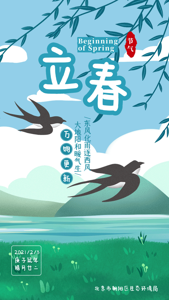 立是“开始”之意,春代表着温暖和万物生长,立春之后,冰雪融化,草芽萌动,花枝孕蕾,一切更生。
