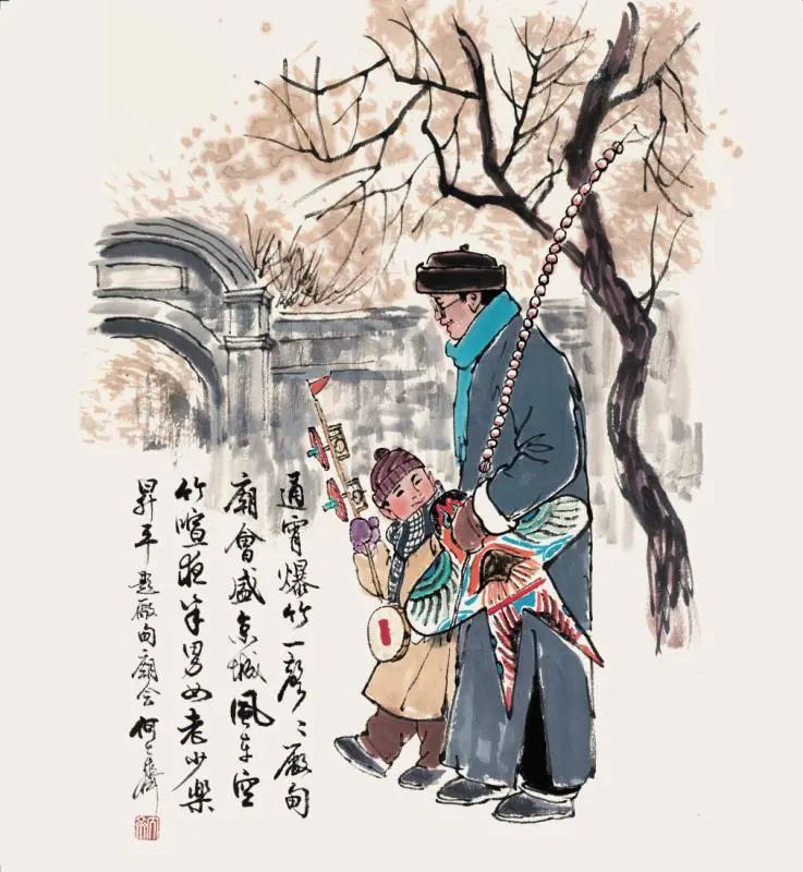 那次过后,我就知道怎样从家里去厂甸了,后来每年过年时我都要和同学或玩伴儿一起去逛厂甸。记得最清的是我小学三年级时,和同学小弟一起去了一次厂甸。起因是姥爷在年前给了我5元压岁钱,在当时,5元钱可是一笔巨款呀!于是过年时我就感到自己腰粗胆壮得很。在热闹的庙会上,我买了一张非常喜欢的年画。年画上岳飞骑在马上,马前张保、马后王横各拿兵器,护卫于岳飞前后。年画属于工笔画风格,人物逼真,造型威武,颜色鲜艳。回到家来,年画被我挂在屋中的北墙上,每天看着,心里很是得意。我从小就喜欢画画,尤其喜欢画小人书上的英雄人物。今天看来,我从那么小就开始喜欢文化了,这也算是有点天赋吧。