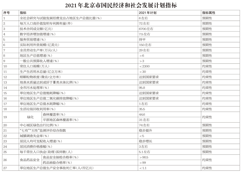 关于北京市2020年国民经济和社会发展计划执行情况与2021年国民经济和社会发展计划的报告