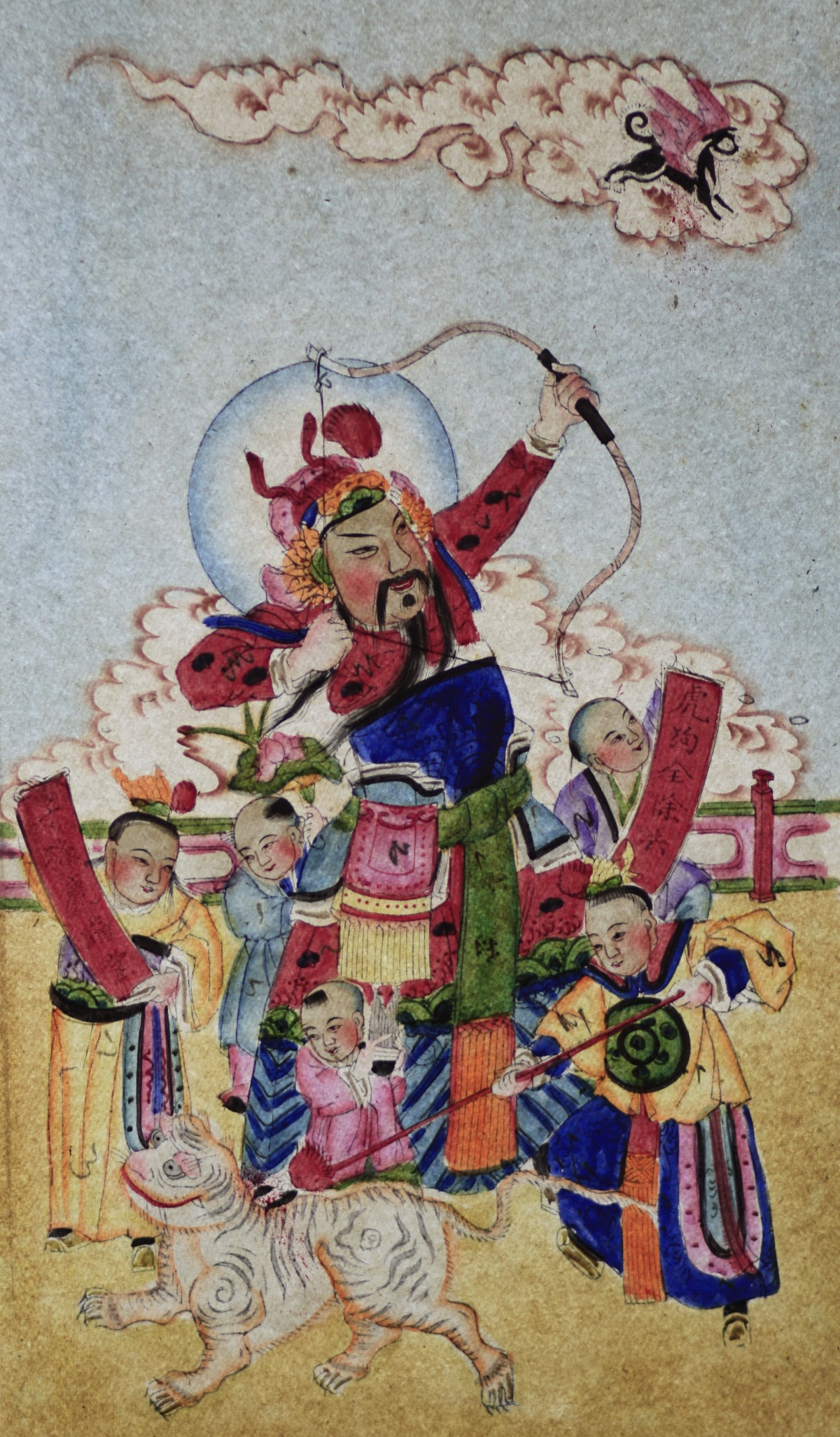 细一研究,尹琪更为年画艺术折服。他没想到,小小年画竟能追溯到上古的黄帝时代,那时人们就已有在门上贴画驱鬼防病的风俗。他更没想到,年画竟有过那么多种说法,在北京叫“画片”“卫画”;在苏州叫“画张”;在浙江叫“花纸”;福建叫“神符”;四川叫“斗方”;直到清朝道光年间,才统称为“年画”。