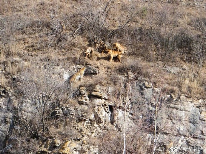 金钱豹被狗群围攻。(山西省森林公安局吕梁山分局供图)