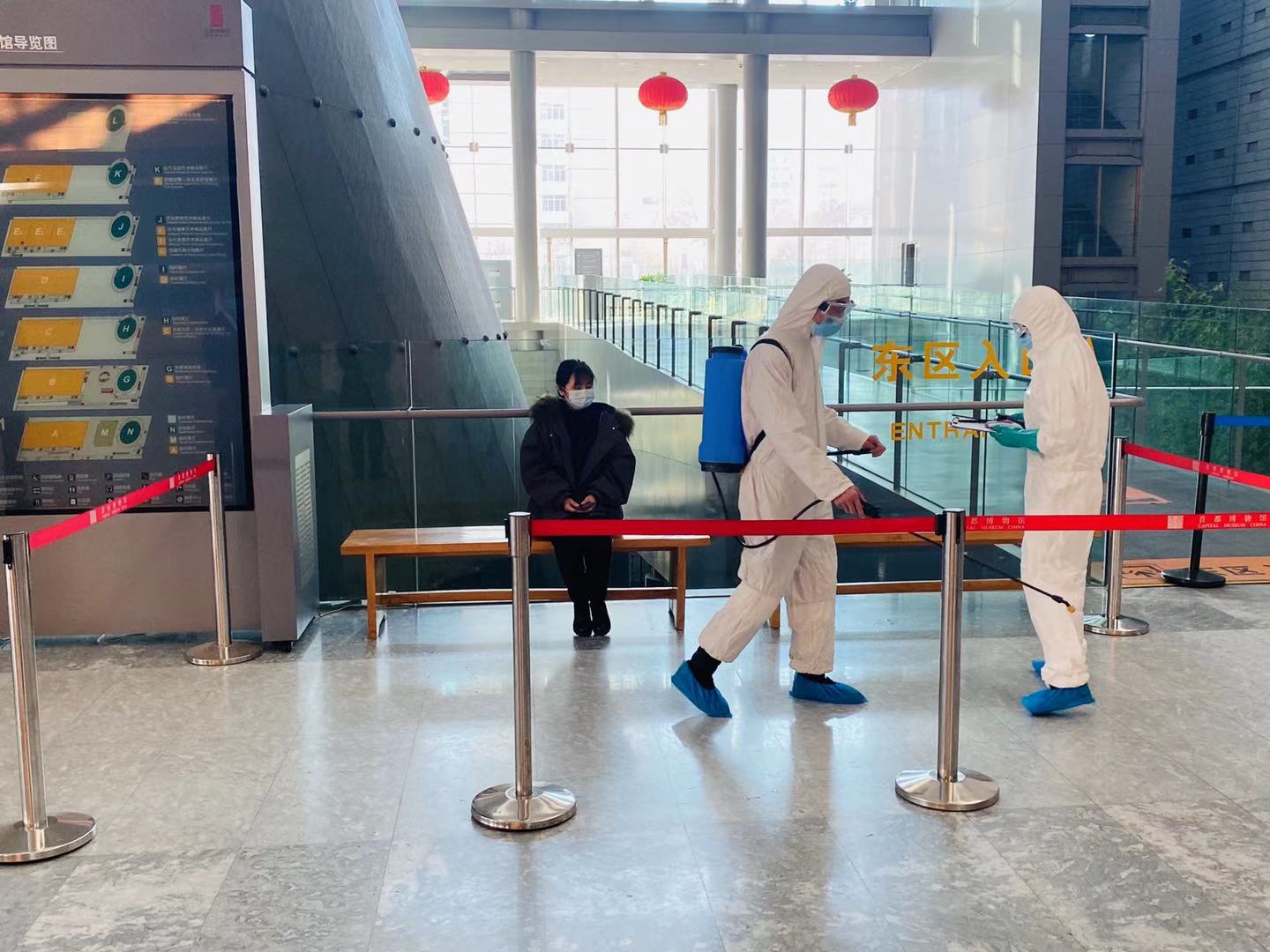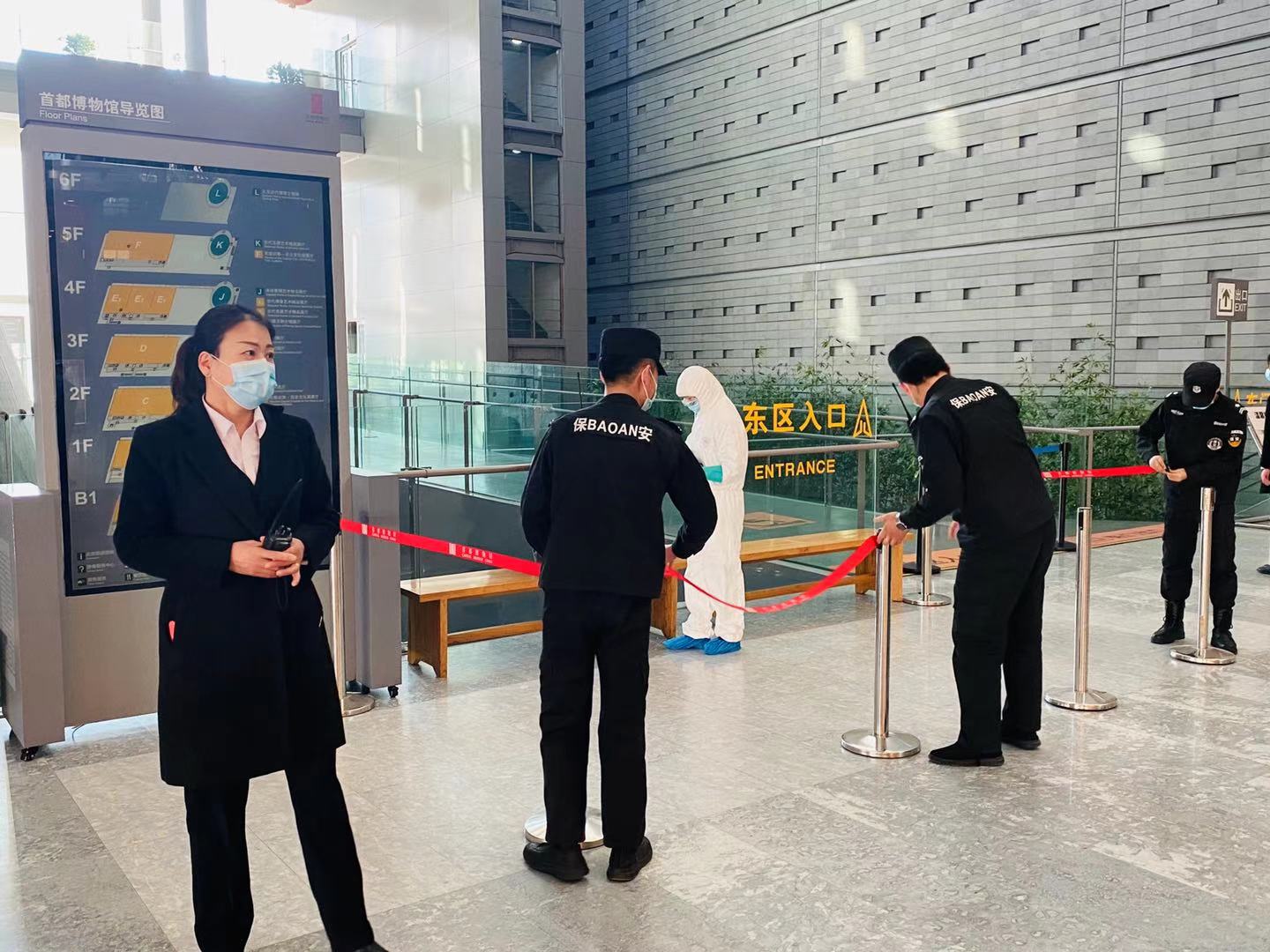 这并不是真实发生的,而是首都博物馆组织的一次防疫演练。据了解,正月初一到正月初六,首都博物馆的营业时间要延长到晚上9点,为此物业管理方在防疫工作上做了充足的准备。