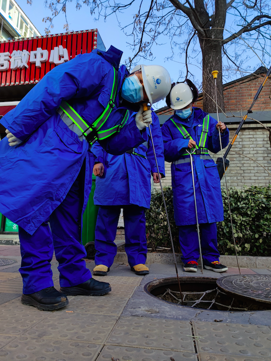 早晨8时30分,蒋师傅带着徒弟们巡查的第一站是东城区裕民路上的管线。用工具掀起井盖,将听音杆下探至管线设备,顶着迎面而来的铁锈味儿,半弯下腰附耳在听筒上倾听。耳畔呼呼的风声吹过,蒋师傅调整了一下姿势,捂上另一只耳朵,弯下腰再次确认是否存在漏点。每天巡检,这样的动作他们都要重复四百次以上。