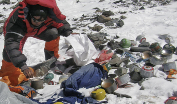 据尼泊尔军队估计,仅珠穆朗玛峰上就有14万吨垃圾,包括40吨人类活动废弃物,此外还有300多名遇难登山者的遗体。