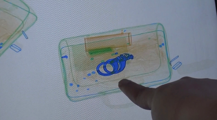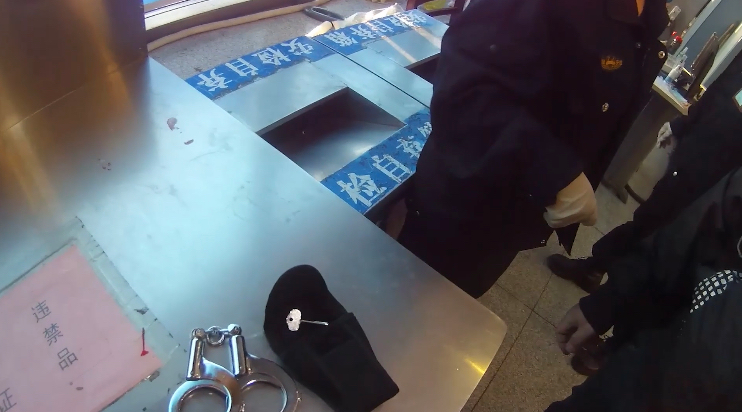 2月21日上午,邯郸火车站进站口,安检员在安检时发现,一名男子随身携带的手提袋内有一疑似手铐的物品,随即将该男子拦下询问。男子承认自己带了一副警用手铐,但却没有相应的工作证件。安检员赶紧通报执勤民警请求处置。
