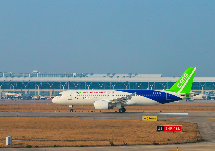 C919大型客机是我国自行研制、具有自主知识产权的大型喷气式客机,2017年5月5日在上海浦东国际机场完成首飞。2010年,东航与中国商飞签署了C919大型客机启动用户协议和采购意向;2016年11月,在第十一届中国国际航空航天博览会上,东航与中国商飞签署合作框架协议,成为C919大型客机的全球首家用户;2019年8月,东航与中国商飞在北京签订《ARJ21-700飞机买卖协议》;2020年2月,东航在新冠疫情最为严峻时期,在国有大型骨干航空运输企业中,率先成立第一家专业运营国产民机的航空公司——一二三航空,国产ARJ21飞机在东航正式运营。