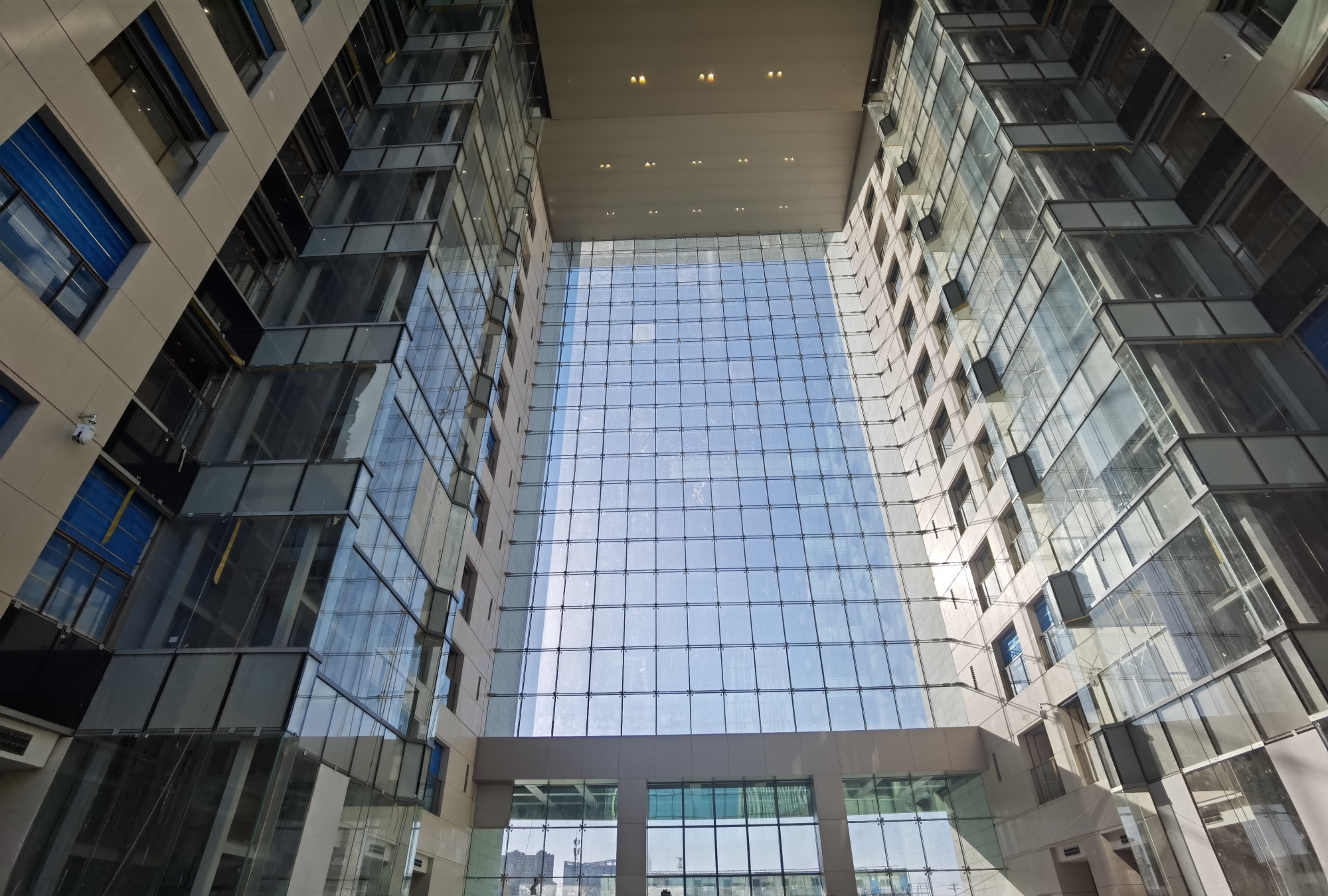 丰台创新中心相关负责人介绍,作为聚焦智能产业的园区,办公区内部环境也是格调满满,充满创新元素。45m超大柱距、3+2挑空的空中会客厅使用玻璃幕墙采光,通透明亮。全景落地视野辽阔,可俯瞰产业园内中央公园风光,远观丰台园南中轴美景。