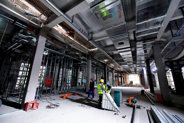 工人们在对老厂房进行更新改造,老骨架将承载新功能。记者唐建/摄
