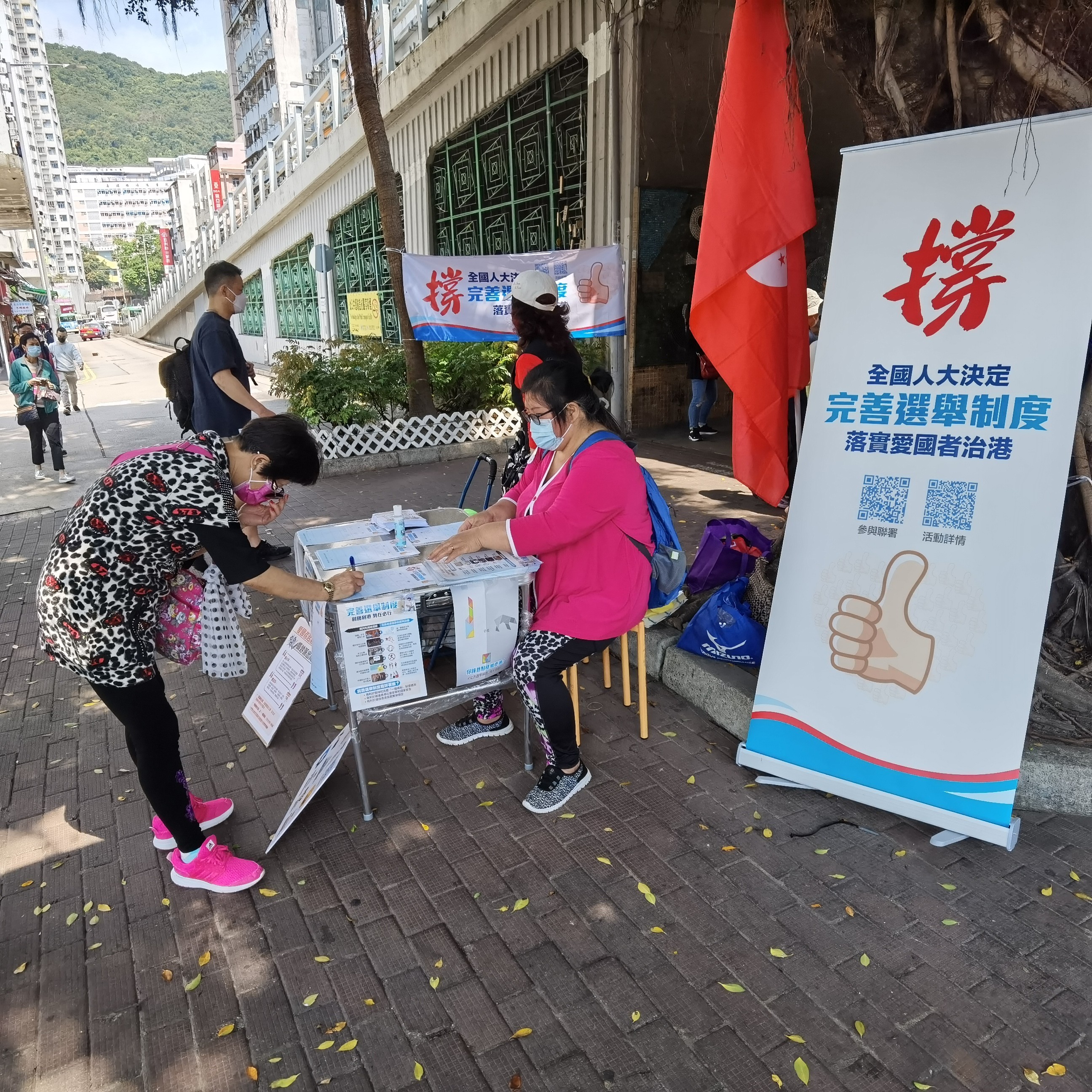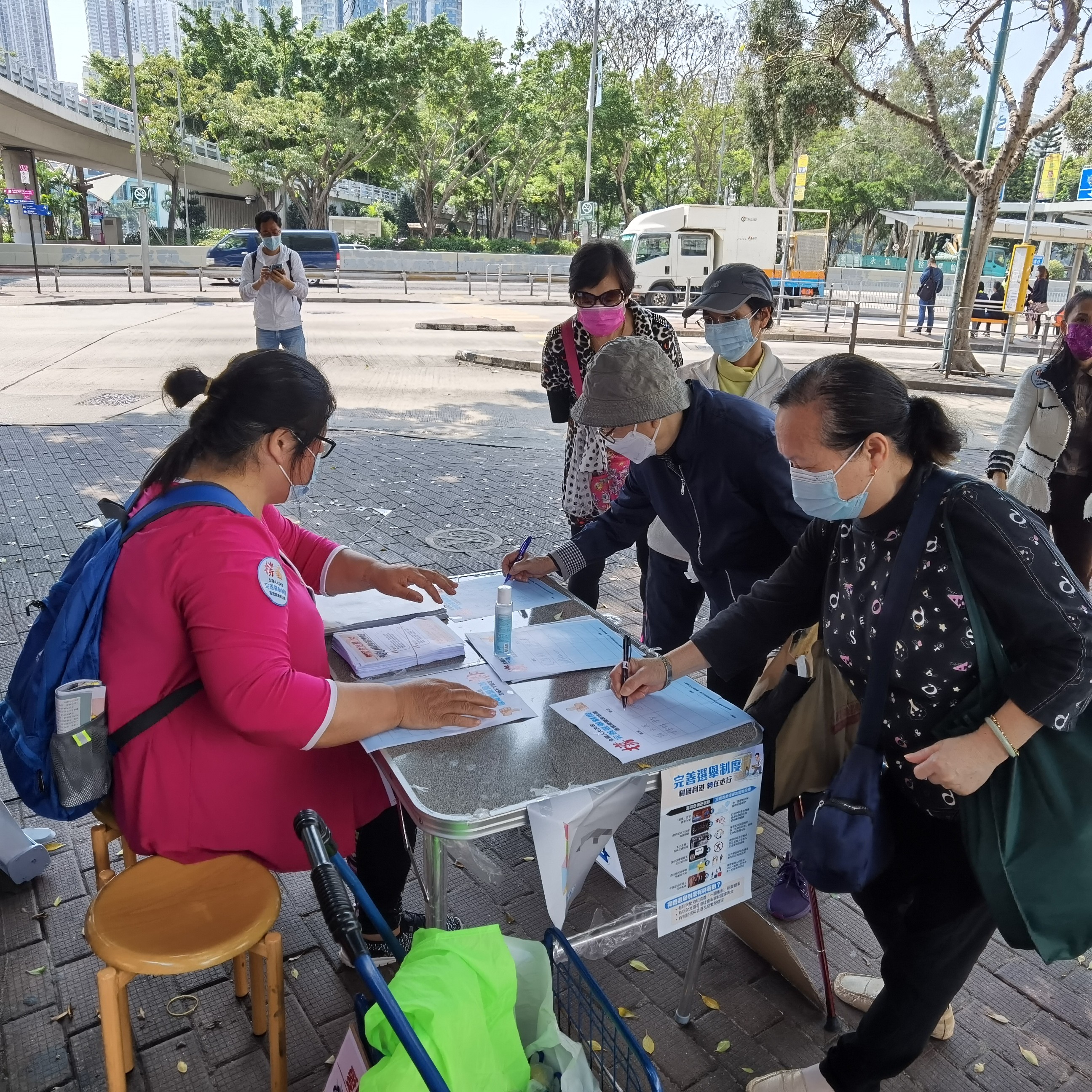 活动现场,义工们分工合作,有序展开签名工作。一组义工负责向市民派发宣传单,讲解涉港决定的重要性与意义。另一组义工负责在街头积极呼吁市民签名。街站吸引了不少路人驻足,很多市民踊跃参与,在签名簿上写下了自己的名字,以实际行动支持香港特区完善选举制度,落实“爱国者治港”。