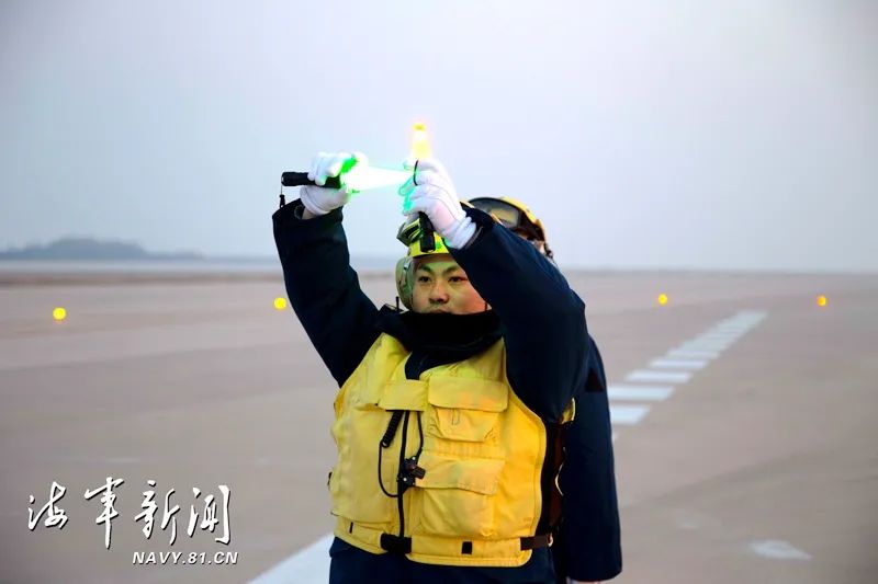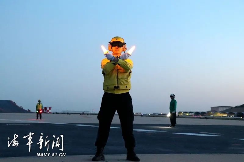 昼夜同训,以训促战。他们的每一个手势、每一个动作、每一个战位,都与航母上的舰面引导标准无缝衔接,确保胜战标尺不差一分一毫,起飞保障能力得到有效检验。