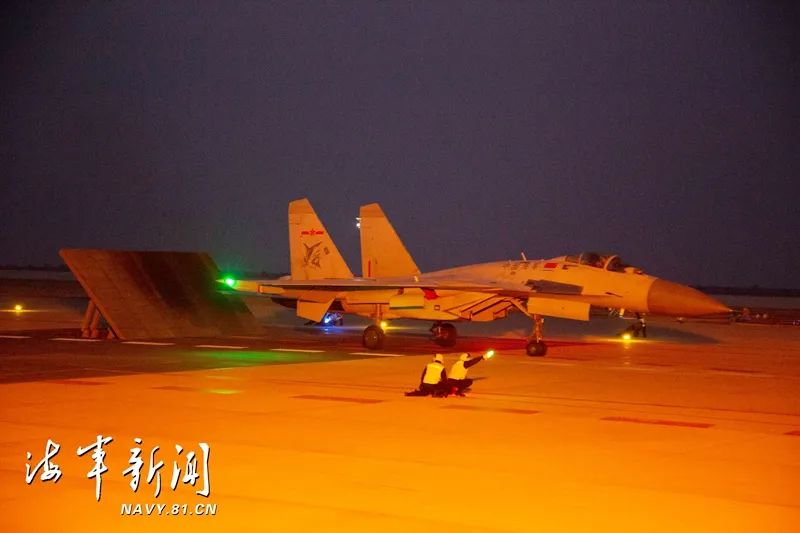如果说昼间是一种检验,那么夜晚就是一场大考。受天气条件、暗夜的影响,舰面引导人员和飞行员、舰面引导人员之间的配合至关重要。他们利用手中的引导灯具作为信号,为“飞鲨”夜间起飞提供可靠帮助。