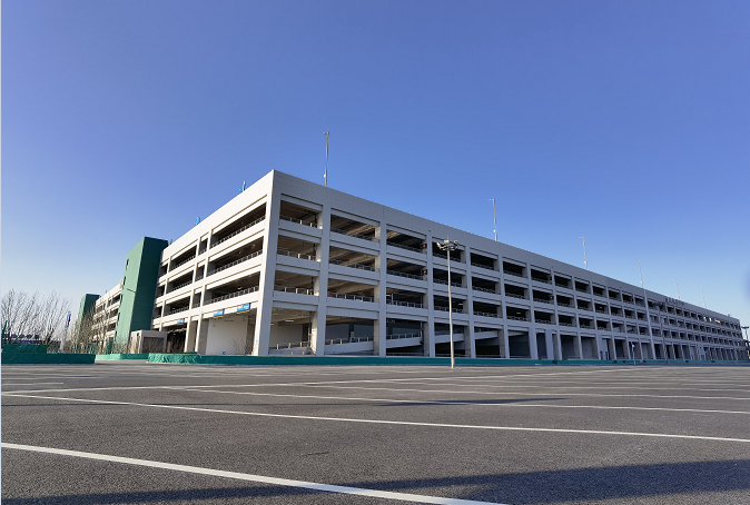 记者从中建二局三公司了解到,北京环球影城停车楼为地上五层地下一层,单体面积达22万平方米。停车楼位于环球影城南侧,入口处有四条笔直的坡道向上延伸,通往各个楼层。