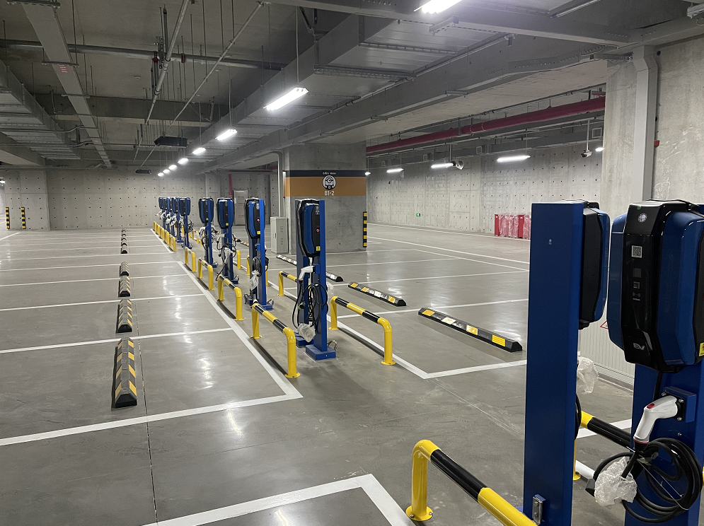 项目总工程师郭天宇介绍说,停车楼设计之初就放弃了传统的螺旋坡道,而且采用“60度角快速停车”模式,游客进入和离开时都可以更快捷、更方便。除此以外,地下一层还设置了400余个充电车位。
