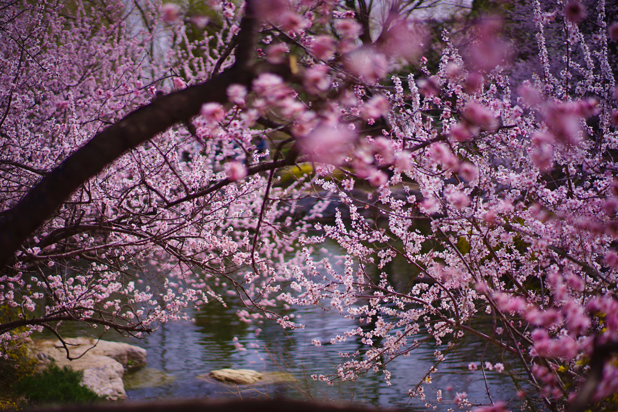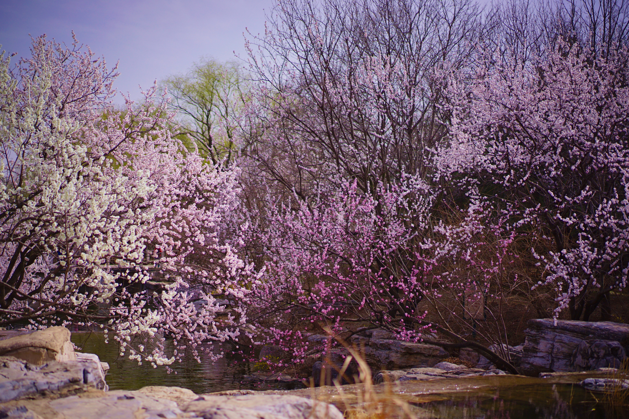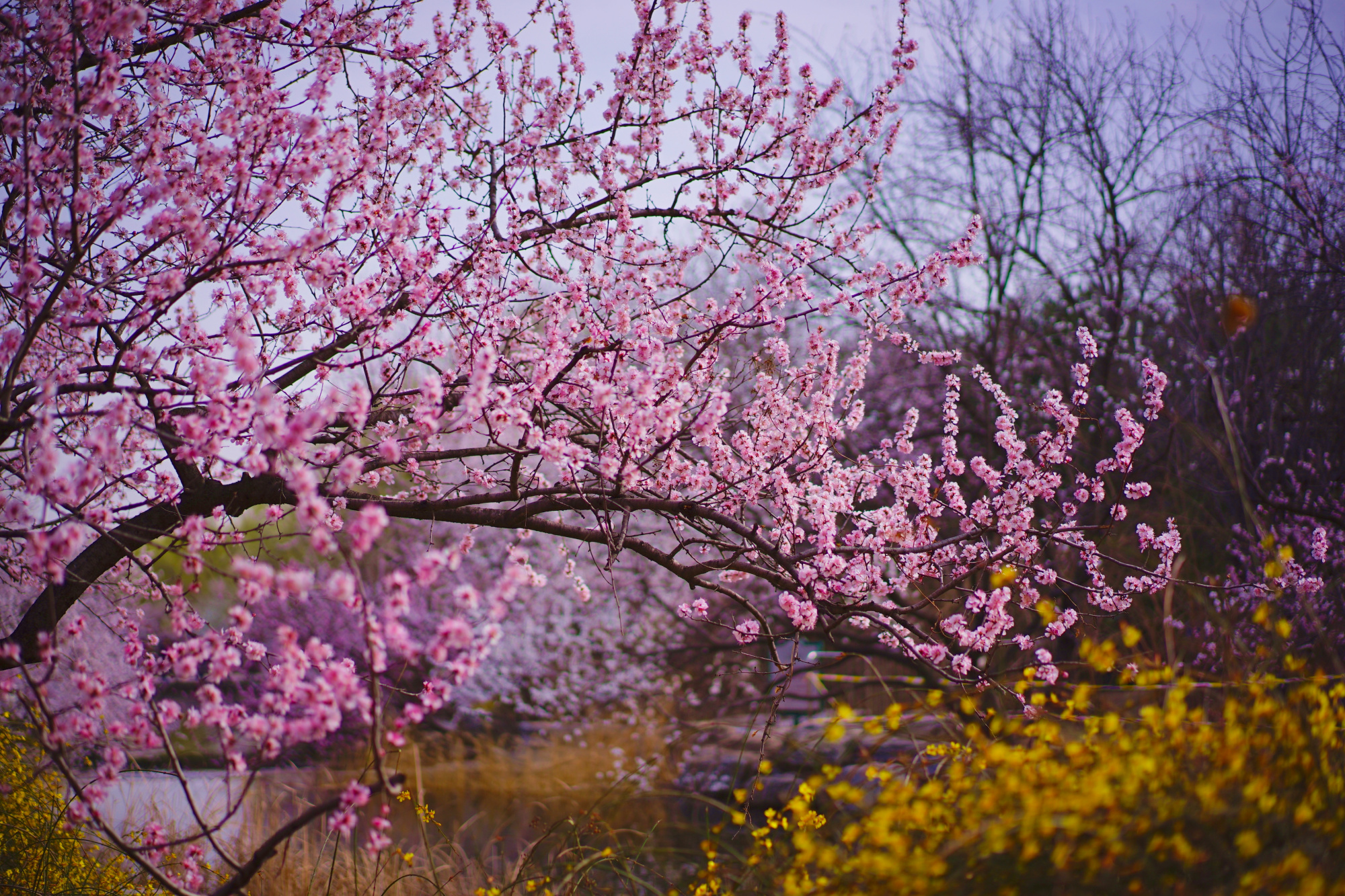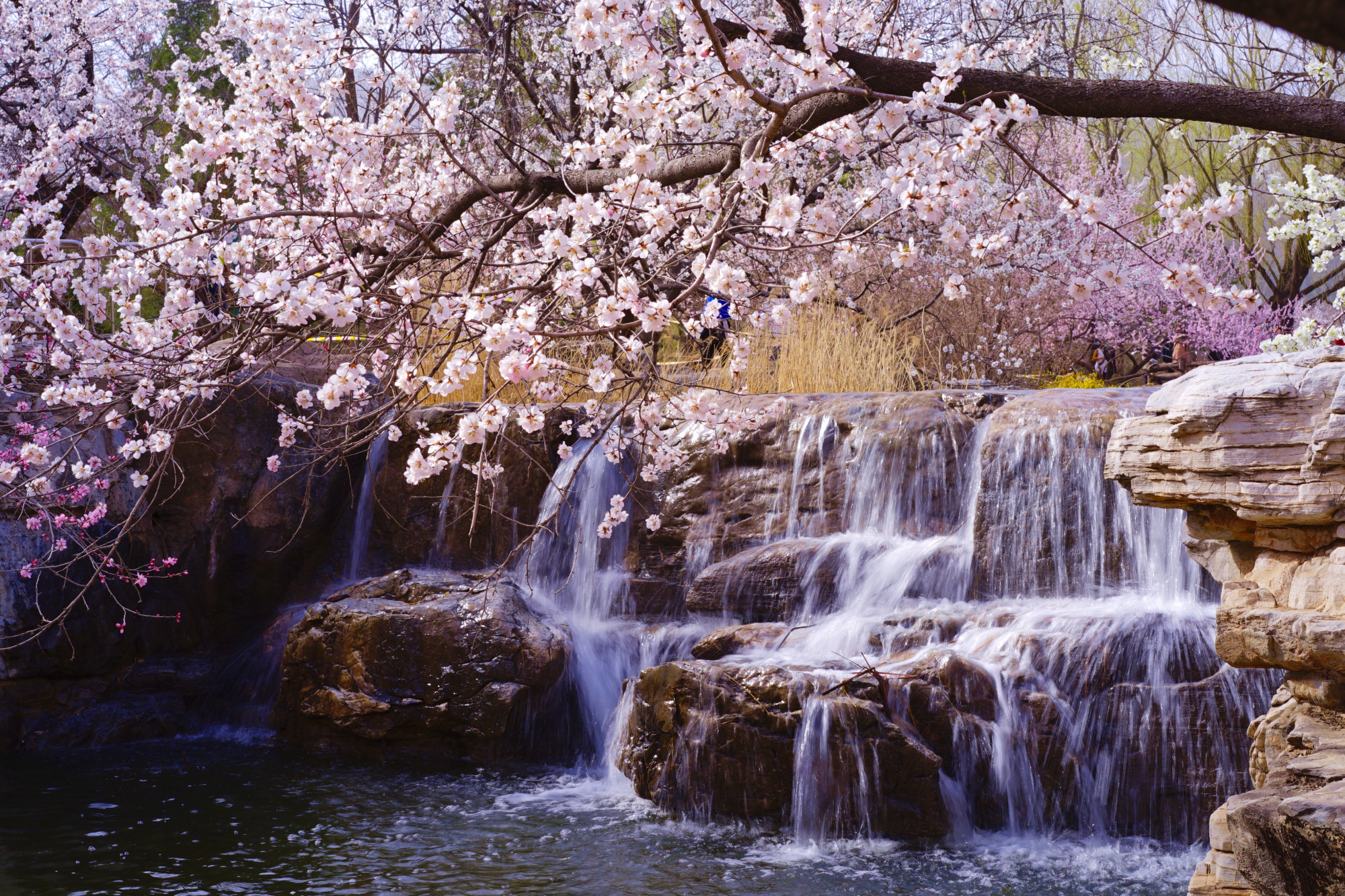 此时位于曹雪芹纪念馆西侧的山桃花溪已经进入最佳观赏期,在这里青山环绕,碧水涟涟,数百株或粉或白的山桃花灼灼开放,黄色的迎春花点缀其间,绘就一幅优美的春日画卷,吸引了不少游客来此踏青赏景。预计山桃花溪观赏期将持续一周左右。
