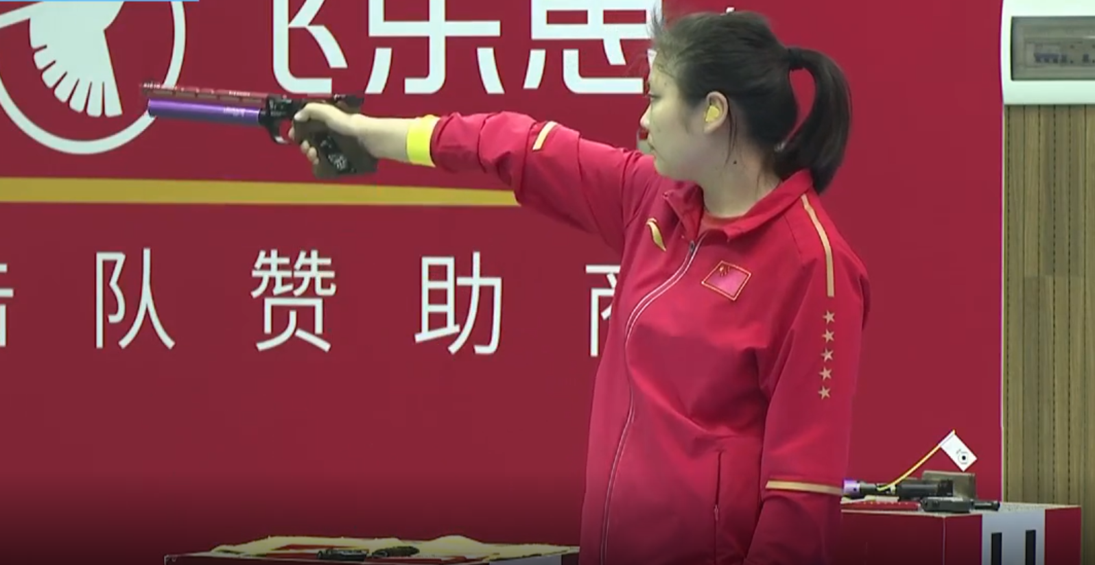 女子10米气手枪决赛中,参加比赛的6名选手分数从零开始,每人先打两组,每组各打5发子弹,随后比赛进入末位淘汰环节。每打两发子弹,将淘汰排在最后一位的选手。前10发打完,陕西代表队的王倩和甘肃代表队的李雪分列前两位。比赛后半段,21岁的姜冉馨展现出稳定的状态,最后两发她分别打出10.7环和10.2环,以总成绩243.8环获得冠军。在总积分上,排在前两位的姜冉馨和林月美获得该项目的东京奥运会参赛资格。