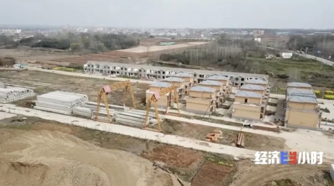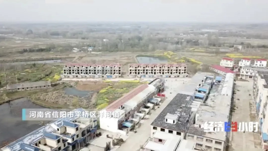 3月中旬,《经济半小时》记者赶往了河南信阳市洋河镇,在洋河镇中心小学以西,白果树文化广场北侧,两排黄墙红顶的联排别墅已经基本完成了施工。