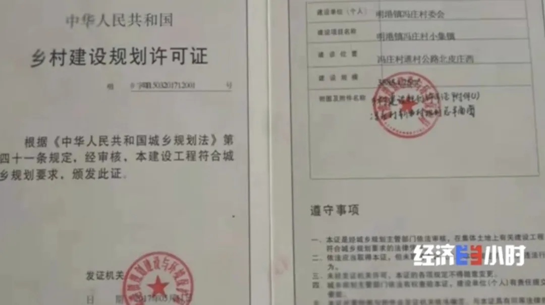这位销售人员透露,这里的房子之所以便宜,关键是土地成本低。当时是按照新农村建设的名目,村里拿出了这块原本是基本农田的土地用来进行房屋建设,后续还办理了乡村建设规划许可证和土地使用证。