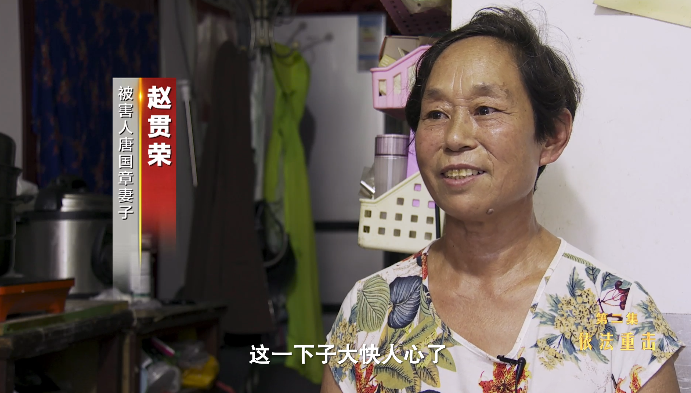 被害人唐国章妻子 赵贯荣:这一下子大快人心了,唐国章现在也不在了,他要是在的话那肯定很高兴。