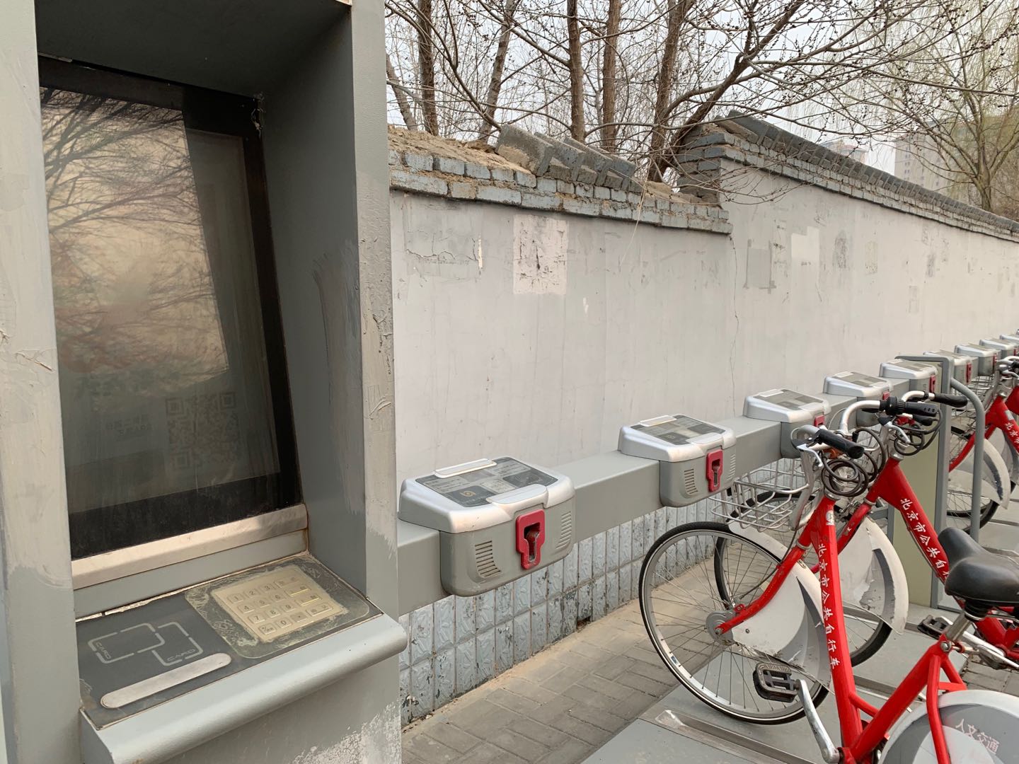 六里桥地铁站外,公租自行车站点控制器显示屏脏污,二维码无法正常扫描