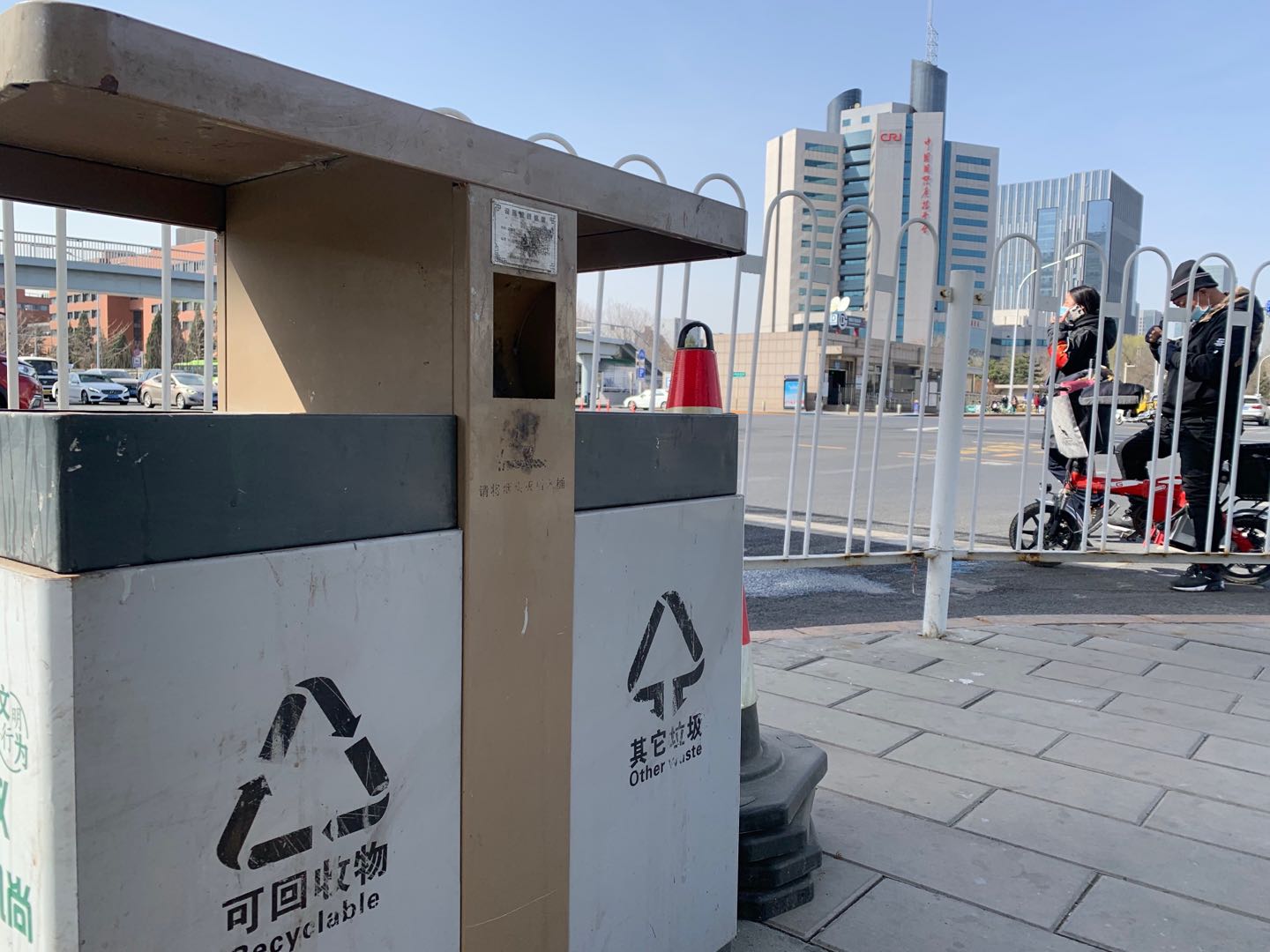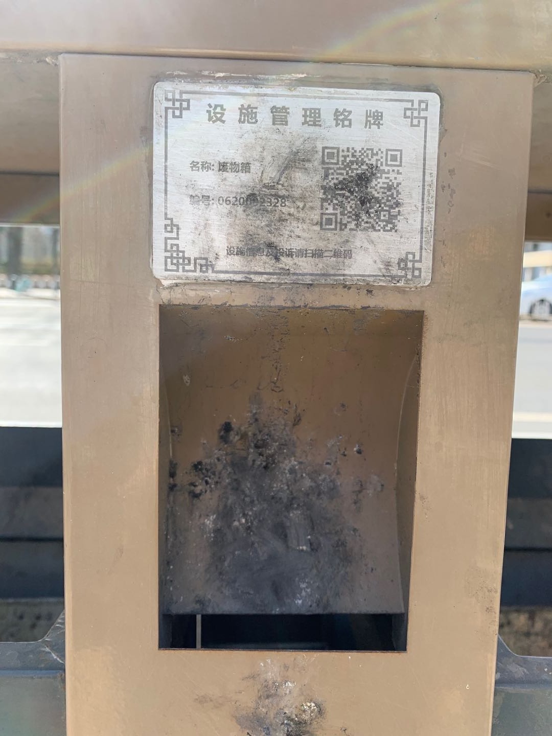 长安街路边二维码污损的果皮箱