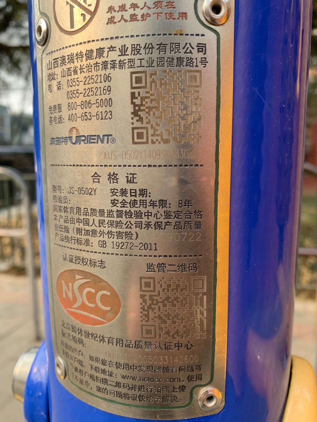 紫竹院南路路边运动器材上的监管二维码,只能扫出一串不知何意的数字