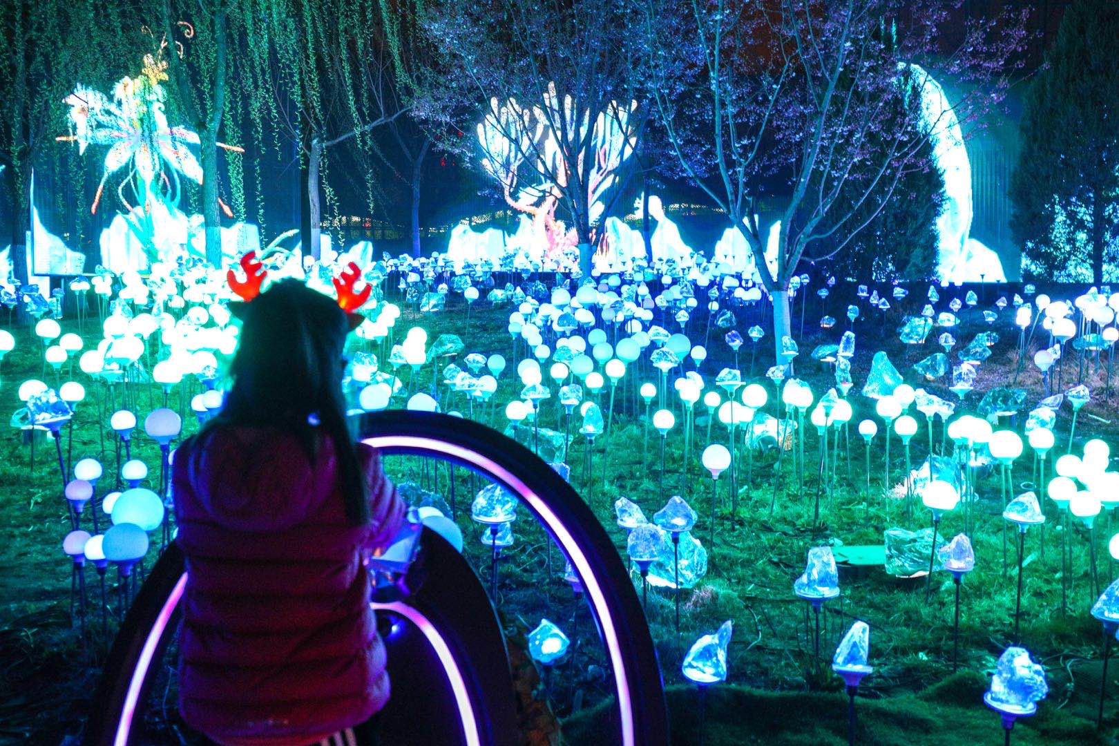 3月25日,由北京歌华文化发展集团有限公司、北京市玉渊潭公园管理处主办的2021北京国际光影艺术季(玉渊潭站)“万物共生——蔚蓝”户外光影艺术沉浸式体验展在玉渊潭公园樱珞花谷区域重装开幕。