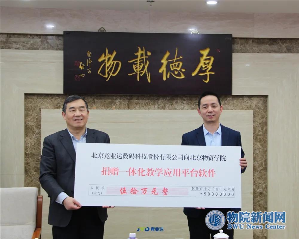 为更好的支持北京物资学院人才培养工作及智慧校园建设,为全校师生塑造现代便捷的教学环境,竞业达还向学校捐赠了价值50余万元的“一体化教学应用平台软件”,用于支持物资学院线上线下混合教学,为双方围绕教育信息化合作探索奠定良好基础。何明珂副校长和竞业达副总裁曹伟出席捐赠仪式。
