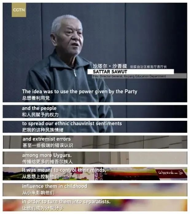 纪录片首度披露,在自治区教育厅原厅长沙塔尔·沙吾提、自治区教育厅原副厅长阿力木江·买买提明等人的策划下,新疆中小学曾使用包含血腥、暴力、恐怖、分裂思想等内容的维吾尔语教材长达13年!