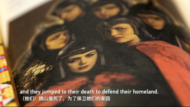 “他们还虚构了7个维吾尔族英雄姑娘,为所谓的‘保卫家园’,被汉族士兵逼到山崖,跳崖而死的故事。”