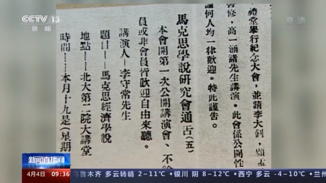 李大钊之孙 李建生:从1919年5月至1921年7月,(我爷爷)发表关于传播马克思主义、歌颂十月革命的论文演讲、杂文等一共140篇,平均每6天就发表一篇,说明他高密度去大力宣传马克思主义。追求真理、探索这个民族解放之路的同学,都会自觉去听大钊先生讲这些马克思主义课程。