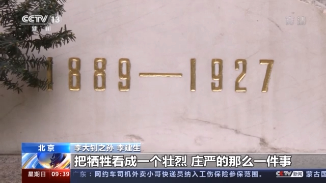 李大钊之孙 李建生:在《牺牲》这个短文里,他把牺牲看成一件壮烈、庄严的事情,面对生死,他一点都不畏惧。