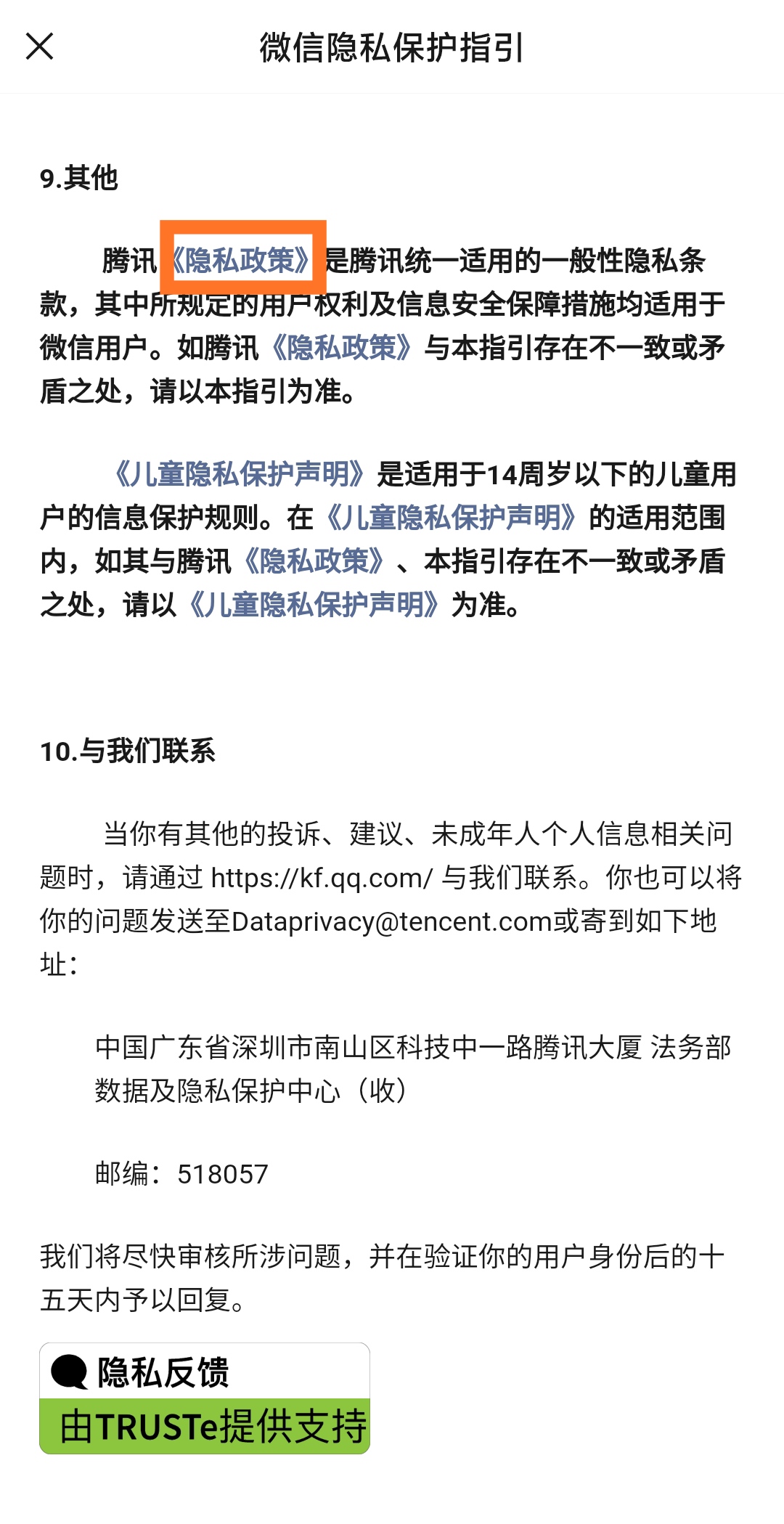 点击其中可选的“《隐私条款》”四个字,页面会跳转到腾讯的“隐私保护平台”。
