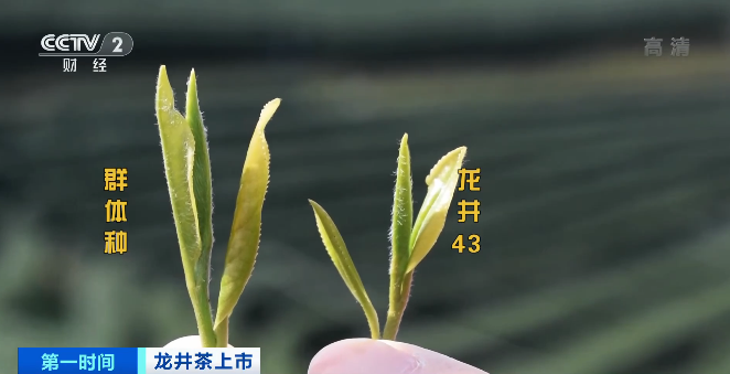 浙江省杭州市西湖区龙坞茶村茶农杜天顺的茶园里,一共种有两个品种的西湖龙井,一个是龙井43号,一个叫做群体种,两者各有优势。一般情况下,龙井43要比群体种早采一周到10天左右,所以明前的价格每斤也要比群体种贵一千元左右。